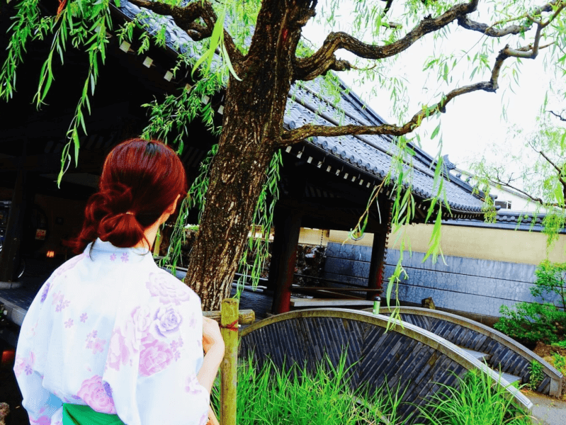 里山の情緒あふれる温泉街散策は、浴衣がとても似合います。