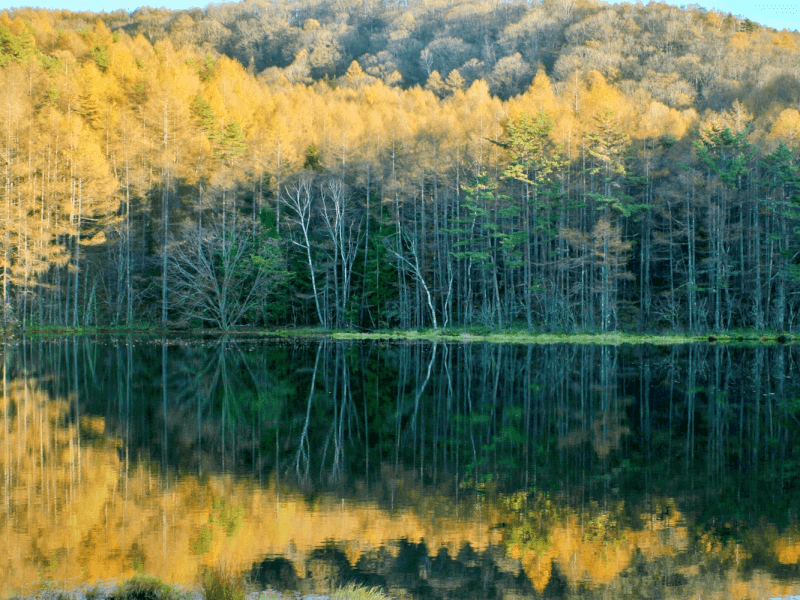 インスタ映えする絶景スポットとして注目を浴びている「御射鹿池」。