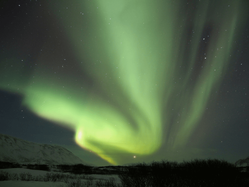 その他にも、ダールヴィーク、ミーヴァトン湖、ネーシャヴェトリルエリアでも比較的簡単に見ることができますが、あくまで天候次第なので、晴れの日に観測するようにしてください。